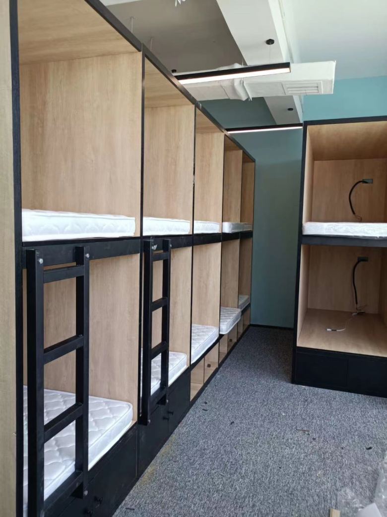 我厂为铁一中补习学校提供公寓床定制,备有书桌架、抽屉柜、衣柜和其他储物柜等家具定制。