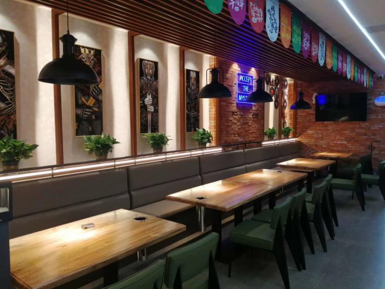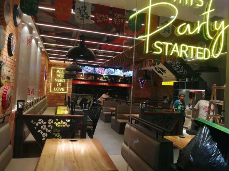 下图为新客户鸿评烤肉店餐桌椅定制家具安装实拍: