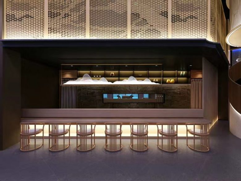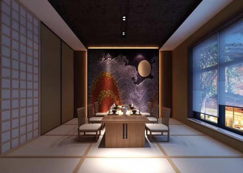 下图为我厂为日本料理店设计的定制餐桌椅家具效果图: