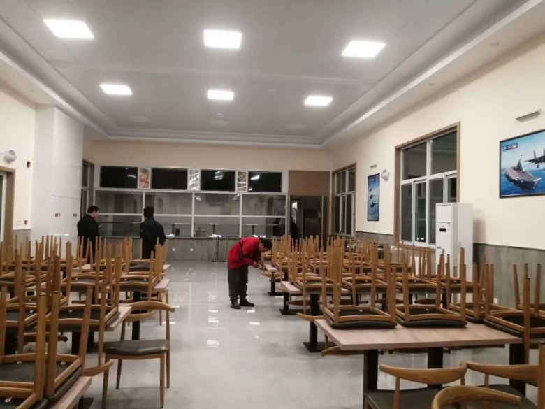 西安庆安公司员工餐厅食堂餐桌椅进场交货