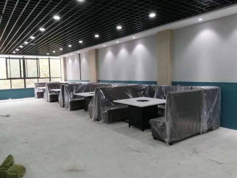 咸阳泾阳火锅店卡座沙发火锅桌安装完成