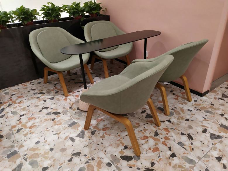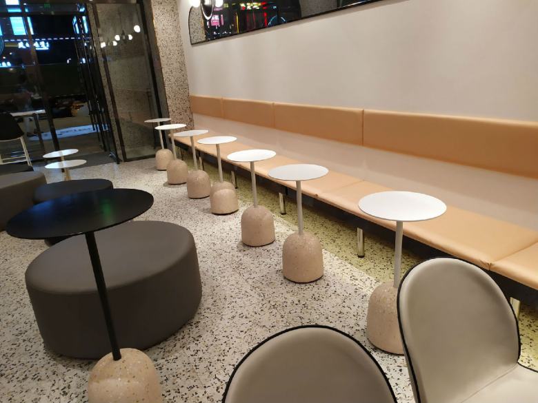 为了让店里的餐桌椅和卡座沙发达到理想的效果,经过设计师多次对店面效果进行深化,终于确定了家具搭配方案。休闲餐桌椅配上简约的卡座沙发,完美的与装修风格融合,既体现出了品牌元素,又迎合了年轻人的视觉审美,柚雪老板在安装完工之后还特意饶有兴致的随手拍了几张店里的家具照片分享到了朋友圈。
