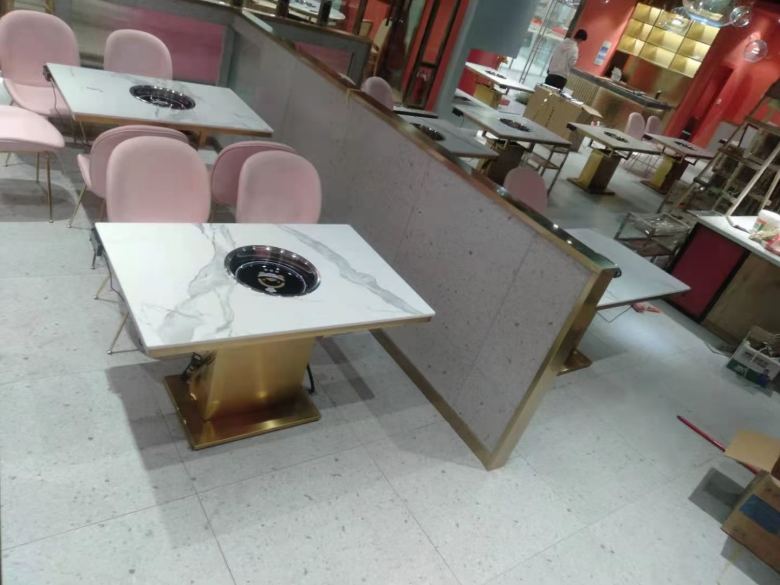经过两个多小时的现场摆放组装调试,大理石火锅桌全部可以正常运转,本次安康口福缘火锅店餐桌椅项目顺利收尾,祝福尊贵的老板开业大吉,生意兴隆,财源广进!