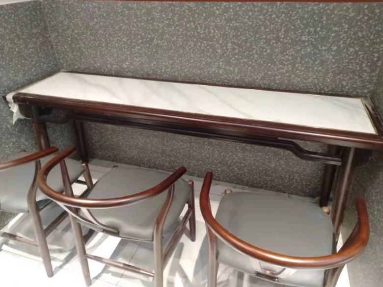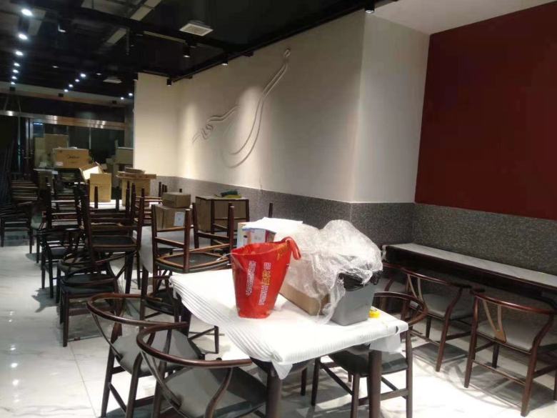 在跟客户确认了材质和尺寸之后,工厂生产部就安排了加工,不到20天的时间,餐桌椅已经完工。客户到厂验收后,厂里一刻也不敢耽误,即刻安排车辆和安装师傅前往现场进行餐桌椅摆放。