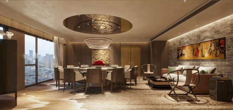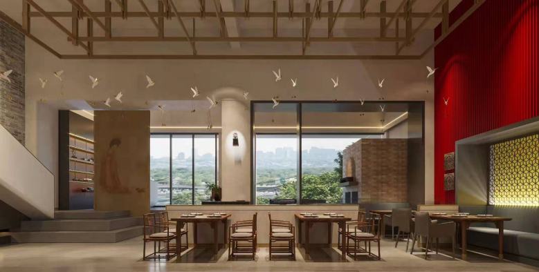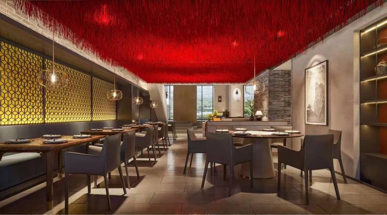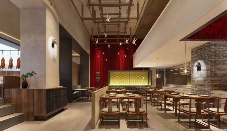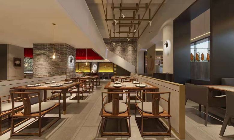 京缘·长安古法果木烤鸭餐厅项目地址位于西安雁塔西路美居酒店楼下,从客户提供的效果图可以直观的看出,这是一家非常有品位的餐厅。