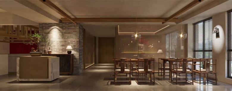 大厅的餐椅采用新中式风格,餐桌则选用了岩板与实木包边相结合的设计,包厢的圆桌偏向于轻奢风格,餐椅及大厅卡座沙发选用全软包包裹,整体的感觉给人既有中式的韵味又有现代的元素。