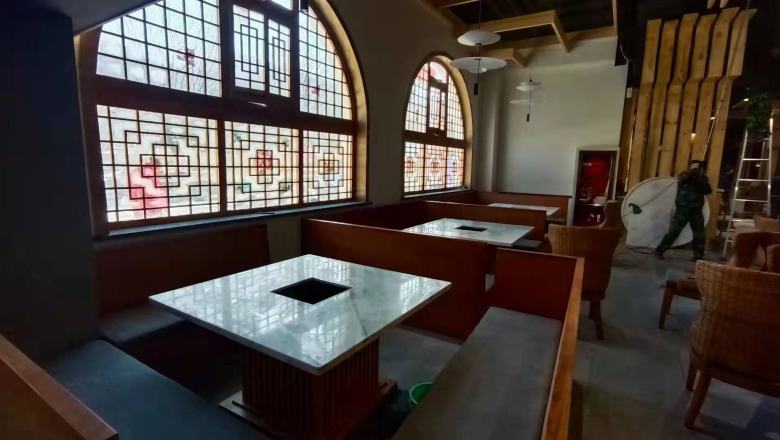 在现场小编看到,客户定做的这批火锅桌椅与人们印象当中的火锅店完全不同。一般的火锅店,从装修风格上来看,空间给人的呈现的感觉就像火一样,红红火火的氛围。而这家店几乎看上去冷冰冰的色彩。