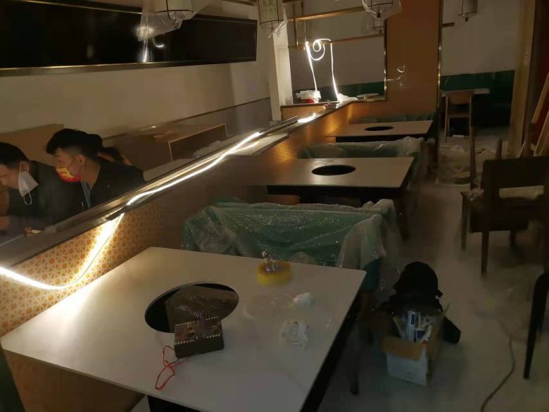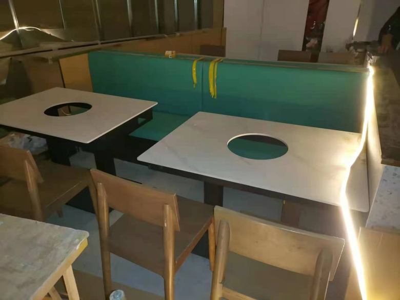 西安映巷简骨藕汤火锅桌椅卡座沙发交货现场