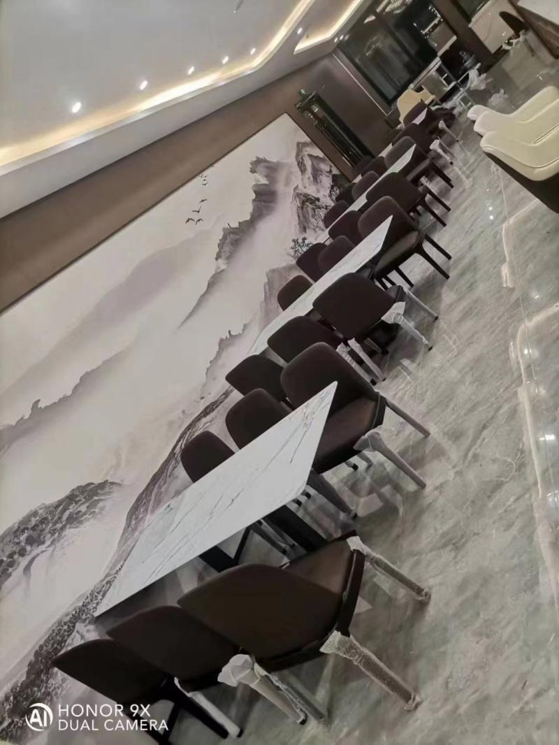 渭南红星美凯龙餐厅食堂岩板餐桌餐椅定制交货案例