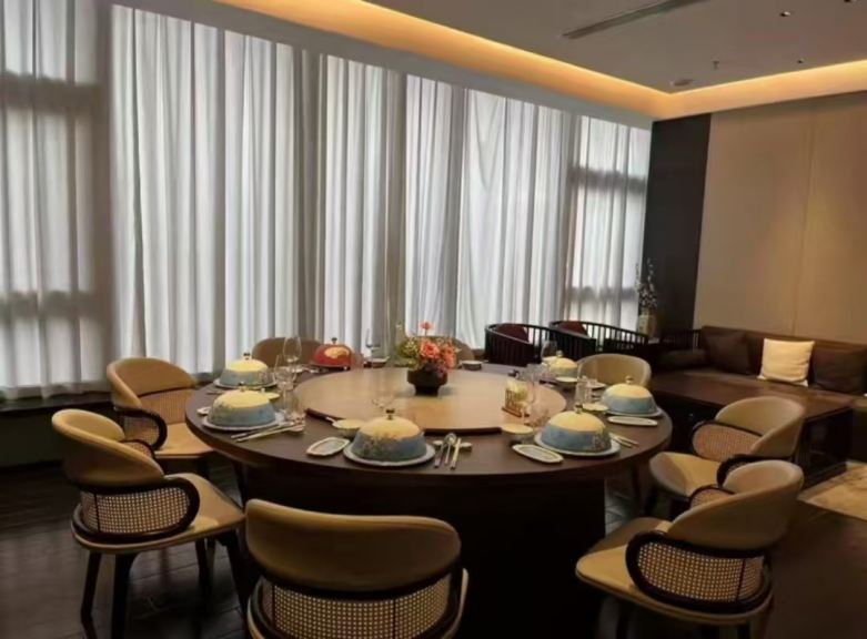 各位老板、设计伙伴:今天跟大家分享的是我们在两年前交付的“西安曲江玫瑰庄园雨林古树茶融合菜”高端餐饮配套家具定制案例,包含的家具有:实木电动餐桌、岩板餐桌、实木软包餐椅、实木沙发茶几组合等,落地效果和验收结果甲方、设计方都很满意,这也为公司再增添一个成功的高端餐饮工程案例。