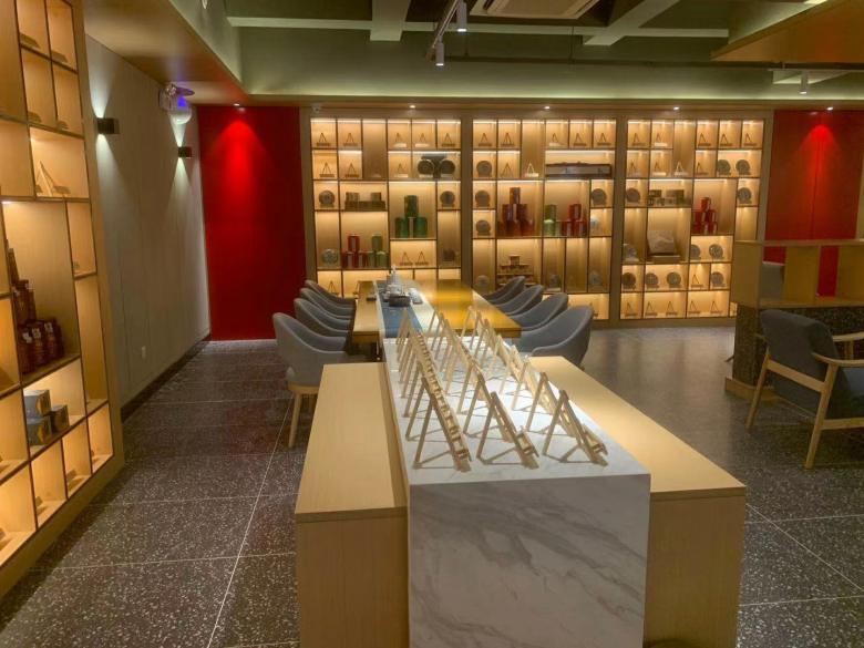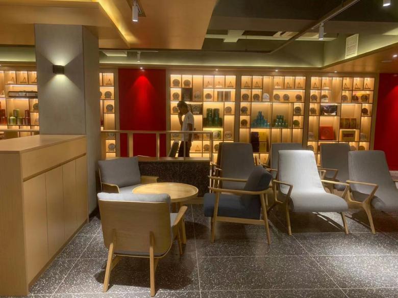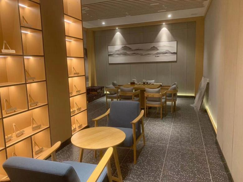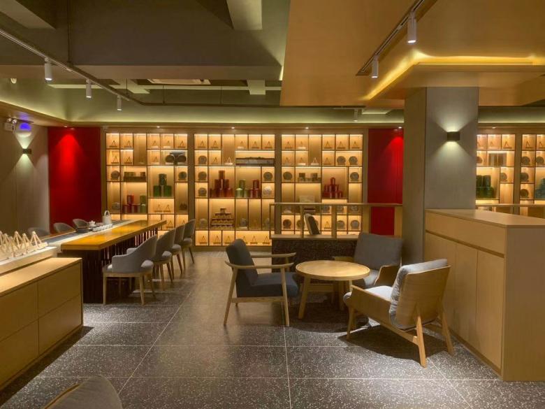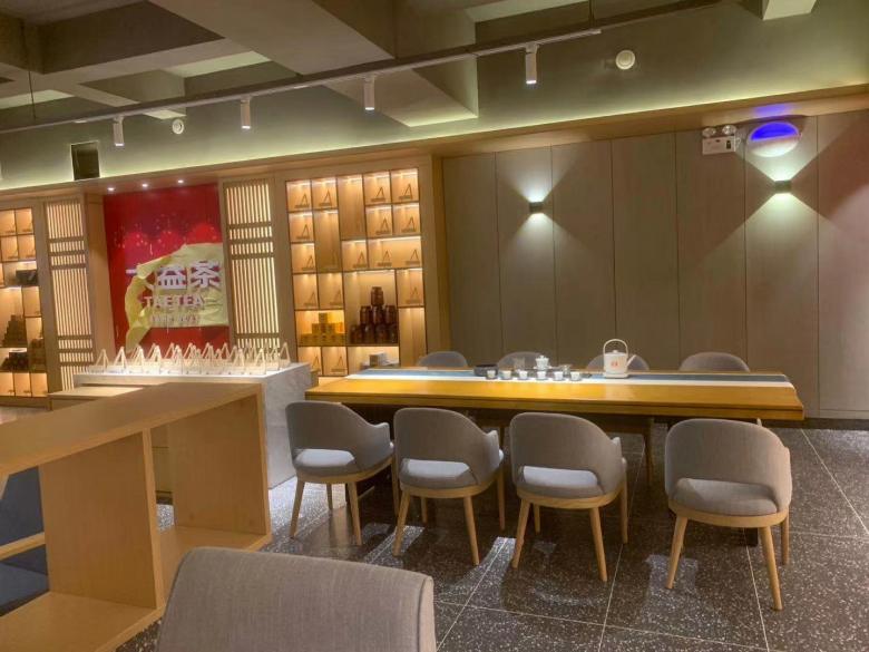 按照装修公司提供的平面图和装修效果图,我厂为高端茶品牌引领者西安大益茶茶馆聚力打造的定制家具全部完工。