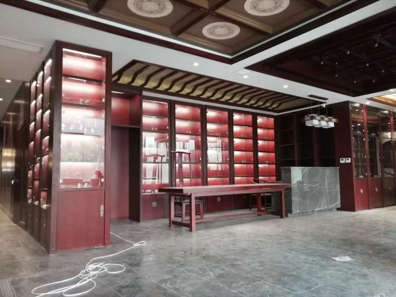 本工程是由我厂为西安某高端茶楼定制的整体家具,风格大气,古朴典雅。通过西安酒店家具厂家博菲克木工师傅们娴熟的精雕细琢,一件件定制家具就像“艺术品”般完美的交付给客户,令在场的所有人为之着迷,是休闲聚会、洽谈生意、接待贵宾的好去处!