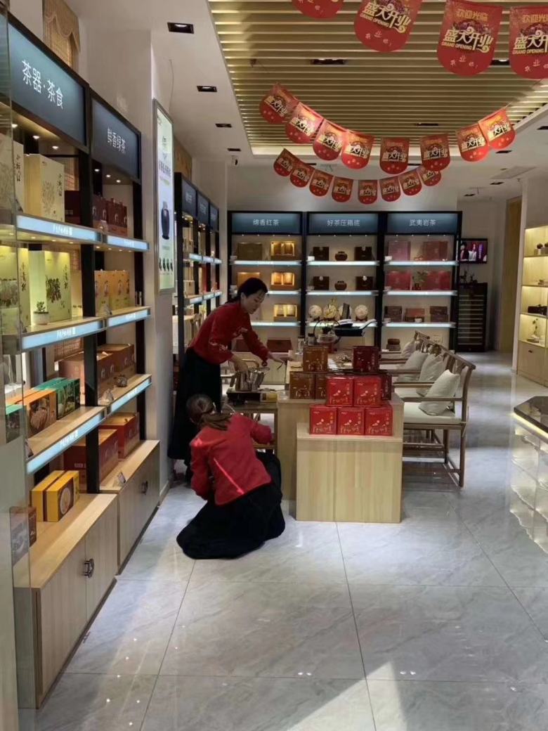 经装修公司推荐,业主联系到了草滩十路的西安桌椅厂家博菲克家具工厂。博菲克是西安一家专注工程家具研发定做的大型家具企业,同时也是大益茶体验馆家具战略合作商。工厂能够根据设计师设计的效果图进行完美还原,包括茶叶展柜、各类中式风格的茶几、餐桌椅等,并且还是行业内率先提出“终身质保”的厂商,客户遍布陕西省内外,2020年以出色的工程业绩响彻大西北,成为诸多连锁品牌合作伙伴。