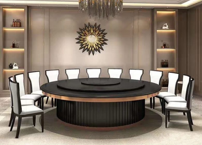 西安博菲克定制家具厂专业定做酒店包房电动餐桌,豪华包房大圆桌、自动旋转餐桌、酒店大圆桌、实木豪华大圆桌、电动大圆桌餐桌椅等,电动餐桌就是在大圆桌面上安装以电动转盘,使用时转盘可以根据设置自动低速旋转,方便用餐人员夹取食物菜肴。服务区域覆盖宝