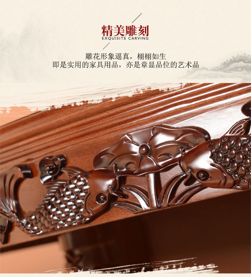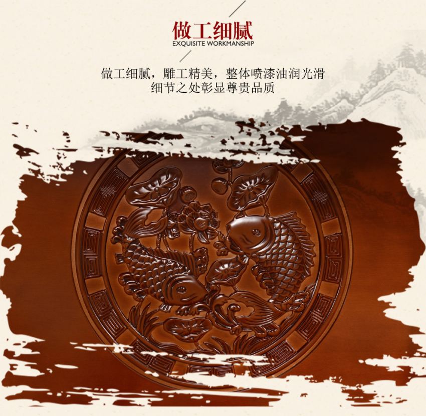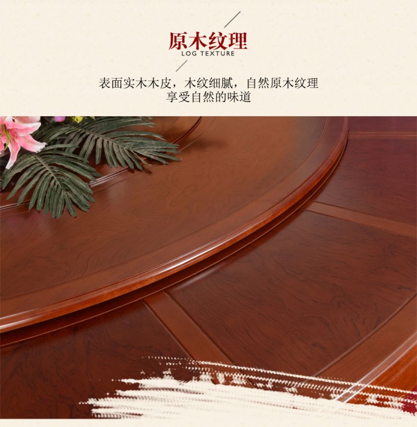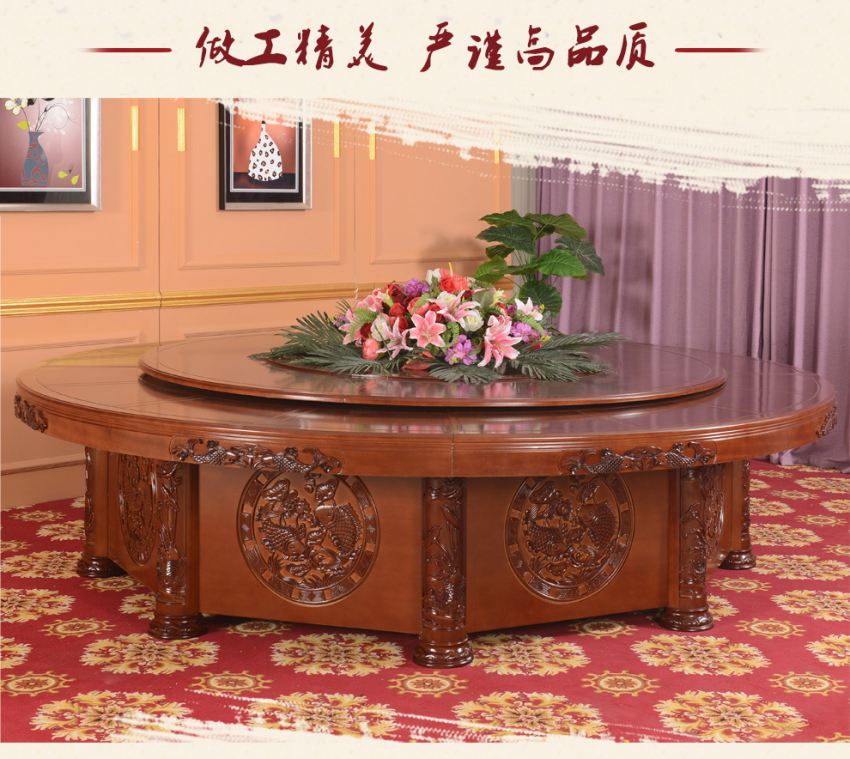 宝鸡电动大圆餐桌采用现代中式风格设计,双鱼图案形象逼真栩栩如生,寓意吉祥如意,年年有余。即是实用的餐桌家具用品,亦是彰显品位的艺术品。大圆桌整体采用环保油漆,触感油润光滑,硬度高,防刮耐烫。天然原木纹理更加细腻,随时突出自然气息。主材料选用