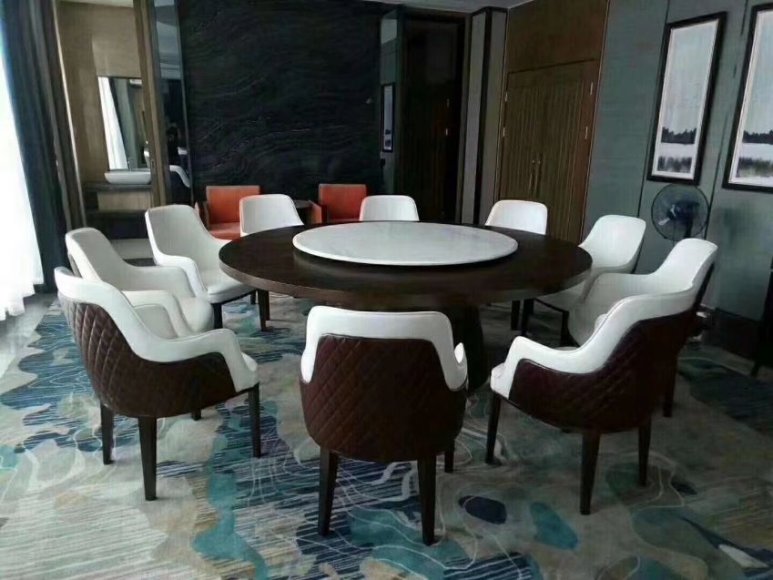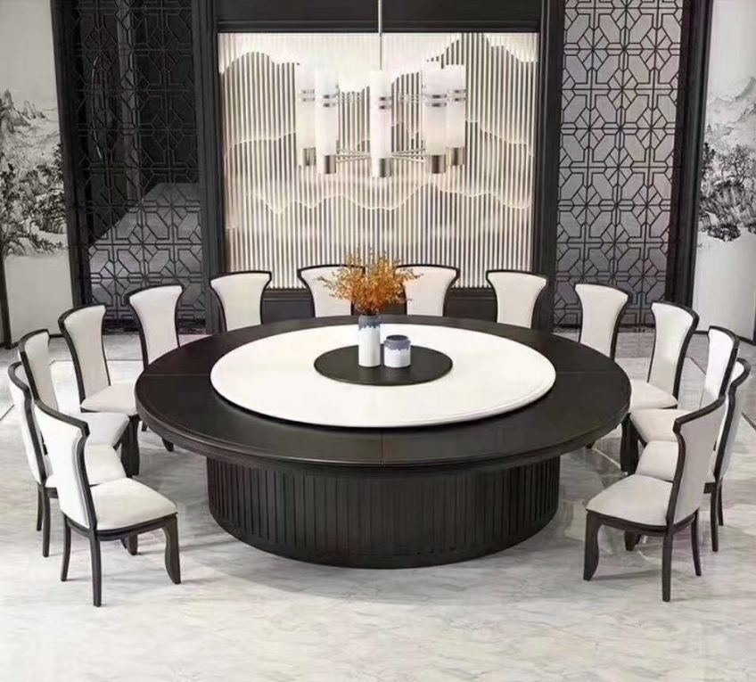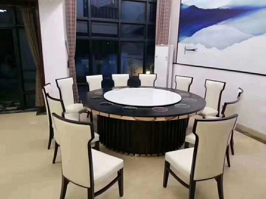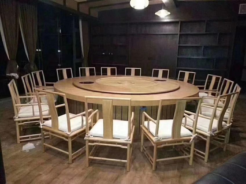 西安实木带转盘电动大圆桌餐桌椅