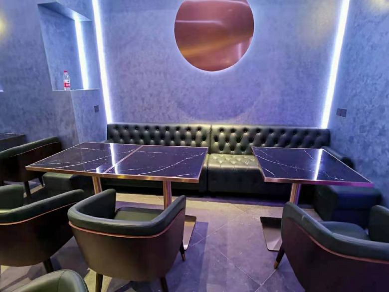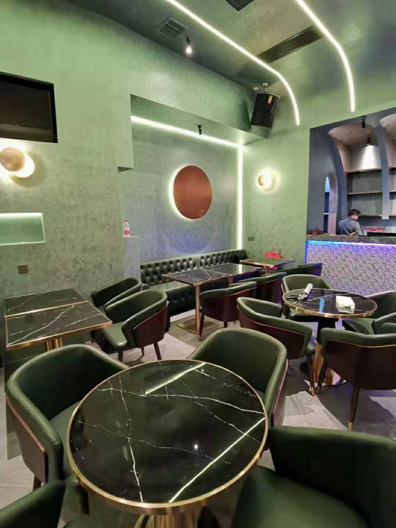 咸阳南平巷音乐清吧是专为年轻人设计打造的时尚休闲娱乐场所,在找到我厂之前,客户跑遍了当地和西安的餐桌椅批发市场,但是呈现给他的是大同小异、款式平平的家具。作为80后的清吧创业者,袁总是比较挑剔的。他认为,现在的90后、00后等时尚男女,非常注重体验感,清吧要是想抓住这群主要的年轻群体消费者的心,在前期选择餐桌椅及卡座沙发上必须下足功夫,不能抱着将就的心态去创业。