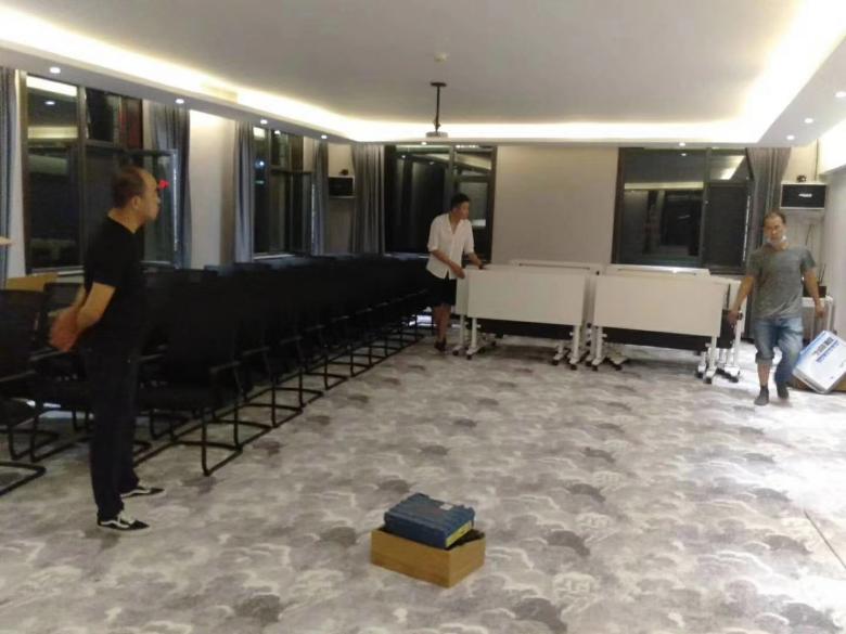 下图为博菲克工人为渭南市华阴喜悦里酒店定制家具安装现场: