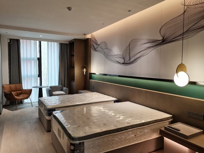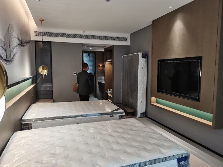 白桦林居酒店样板间的打造,从毛坯房到装修再到酒店家具安装仅仅用了25天左右,这也充分展现了我厂有能力有实力应对所有中大型酒店家具工程项目,也感谢白桦林居酒店方对于西安博菲克酒店家具厂的信任!