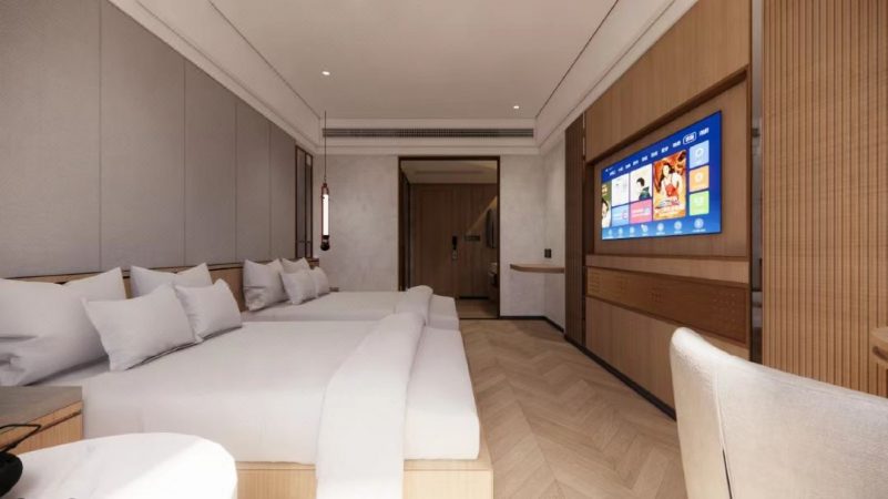 前面我们说过,客户的酒店位置绝佳,处于城中心的广场旁。因此,即使是二次翻新改造,客户依然没有采用家具贴膜的方式去图省钱,而是要重新设计酒店客房,再按照效果图去定制家具。
